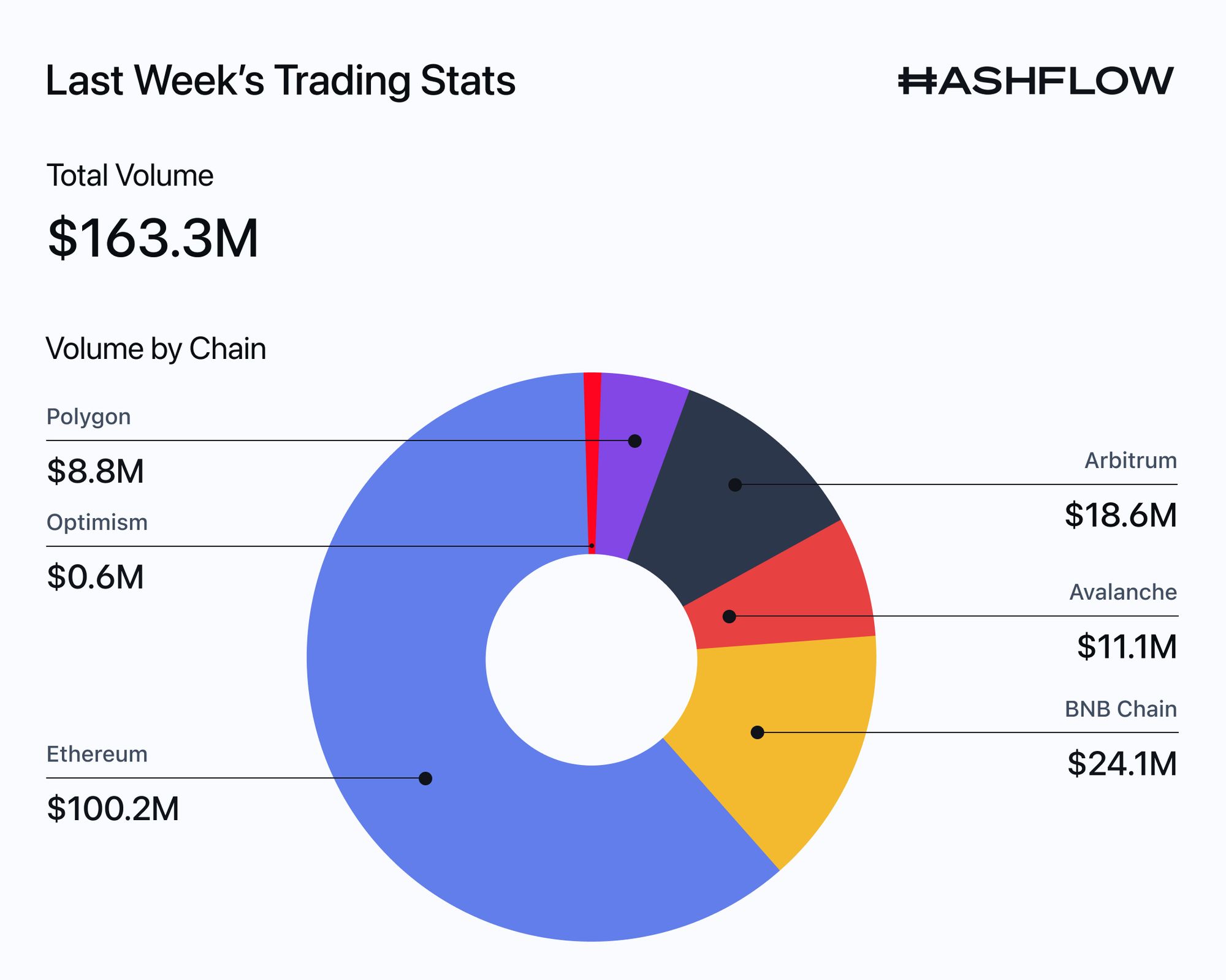Last week, overall volume jumped by ~$50M+ to $163.3M! As usual, Ethereum stayed in the lead while BNB Chain and Arbitrum made big leaps. Shout-out to the BNB frens & the Arbinauts! 💙