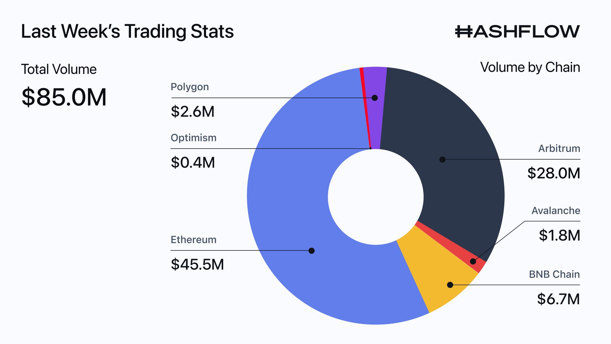 Last week, overall volume stayed above $85.0M. No surprise, Ethereum has remained on top, and Arbitrum has continued to lock in the runner-up spot (π, π§‘). Will these two ever be unseated?!?