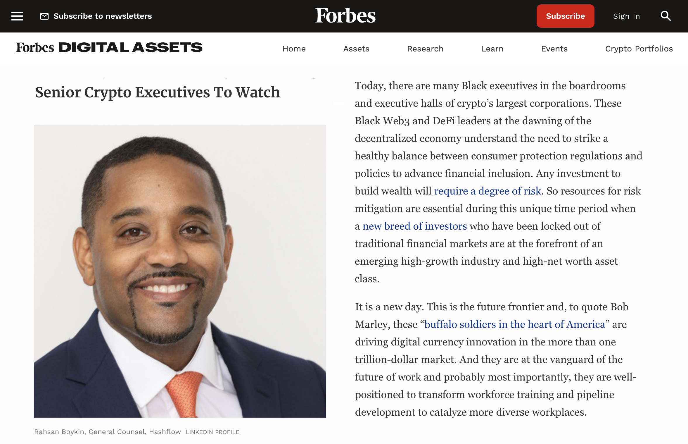 Forbes Featured Hashflow’s General Counsel Rahsan Boykin