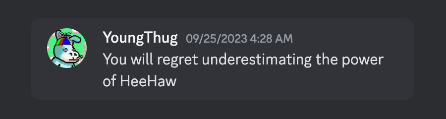 Every two weeks, we will feature a brave warrior who’s slaying both on the Hashverse and CT/Discord battlefield. This issue’s Hero is Young Thug from The Lost Donkeys Allegiance! 🥕